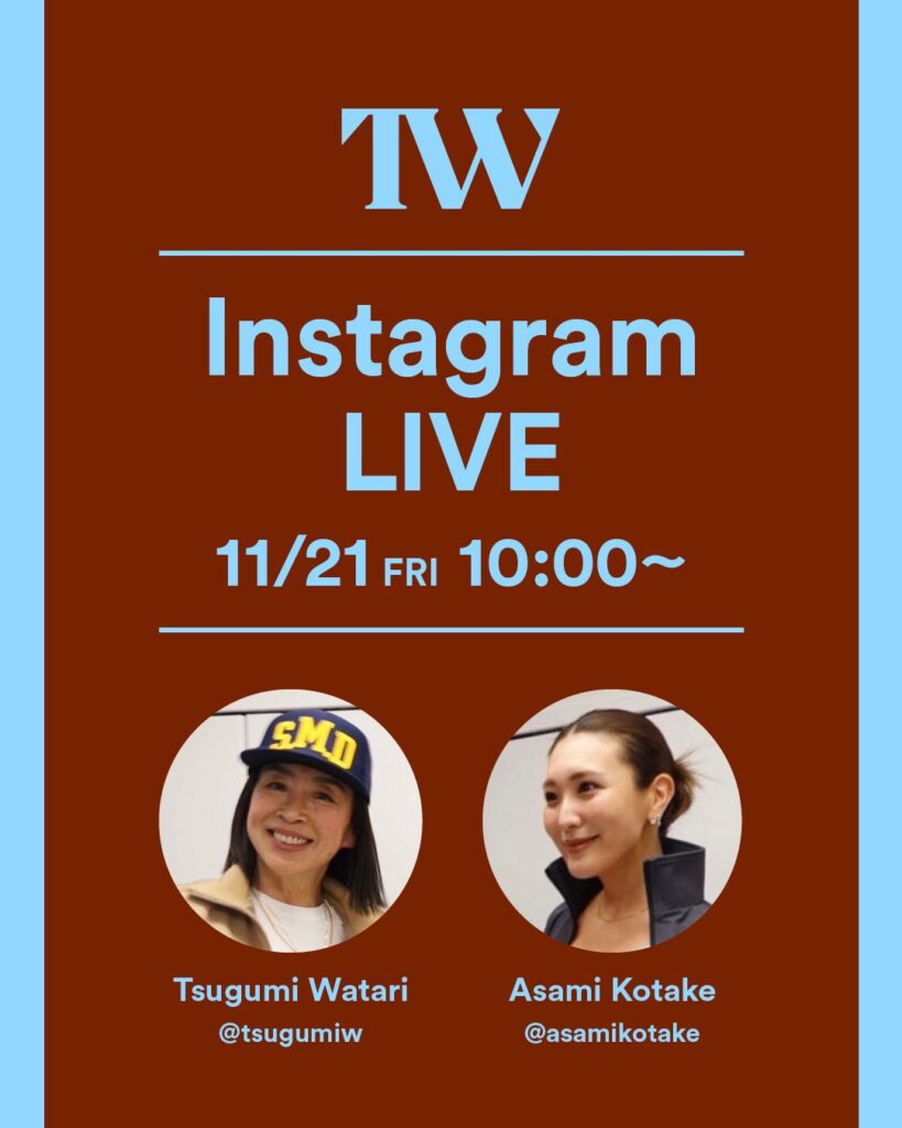 また、11月21日(金) 10:00より、TWディレクター・亘つぐみ氏のInstagramにてTW×NEEDLESコラボレーション第3弾のインスタライブを開催します!