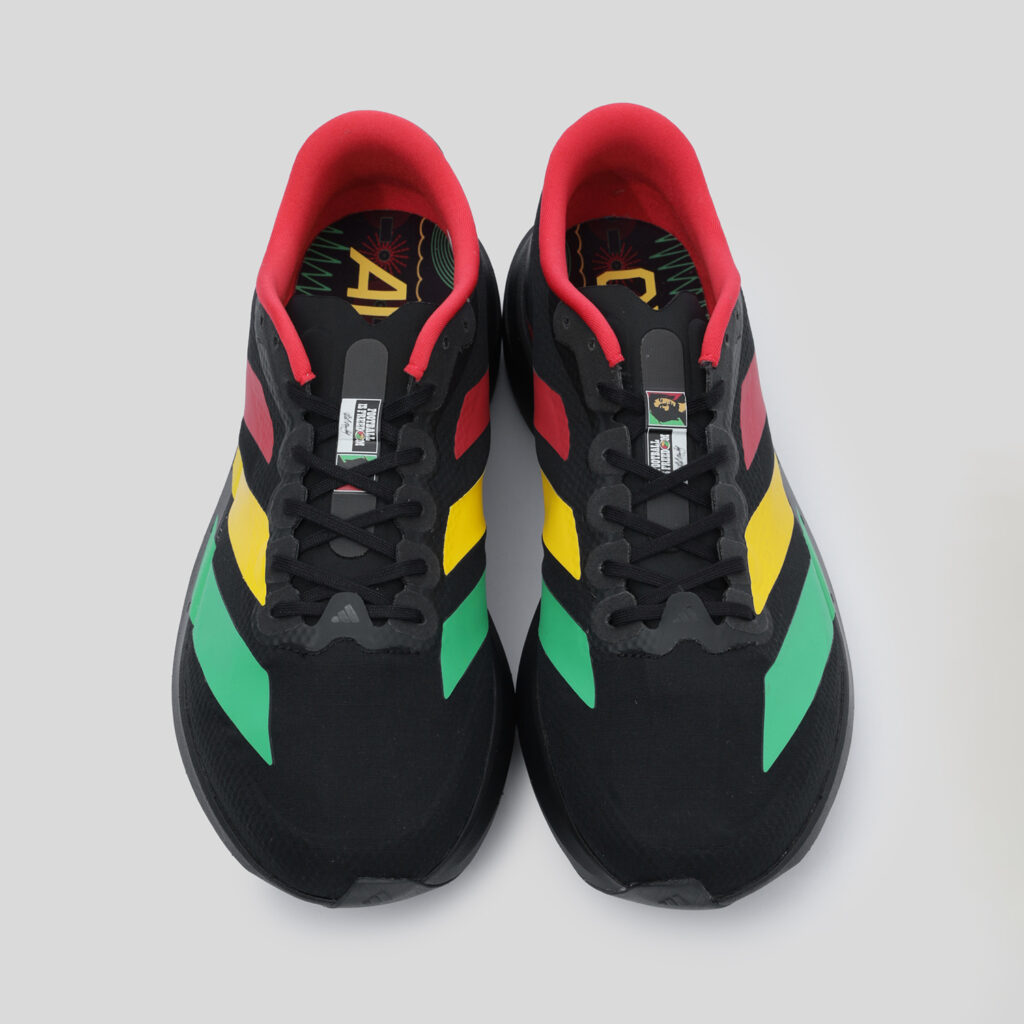 文化的アイコン、ボブ・マーリーへのオマージュを込めた特別なコラボレーションモデル。ADIOS PRO EVO 1をルーツに持つ、アディゼロシリーズ最軽量のトレーニングシューズ。